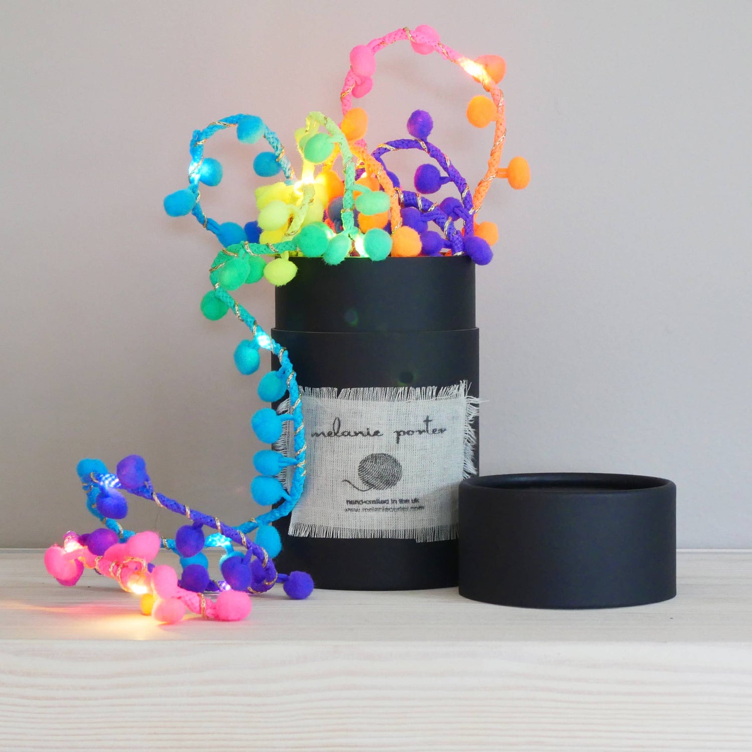 Mel is a designer and maker. From her London studio, She make a range of happy handmade lights in a rainbow of colours.