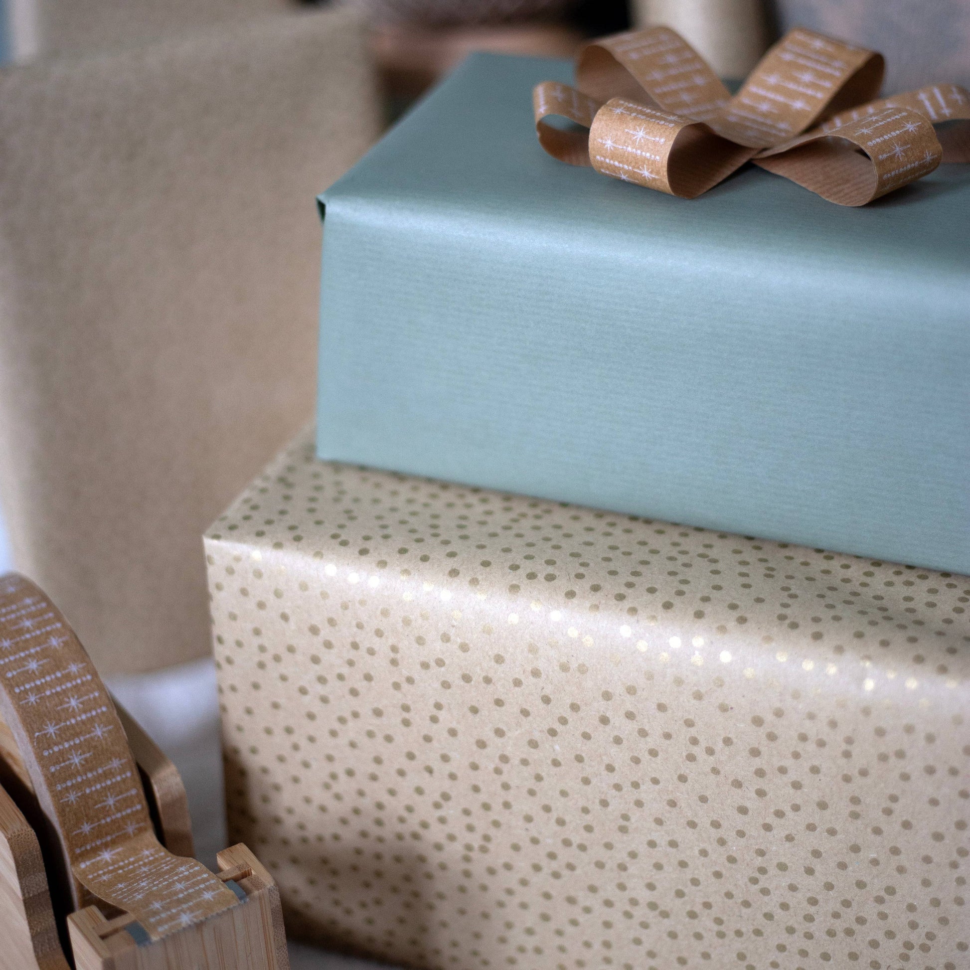 Brown with Gold Dot Kraft Wrapping Paper – 5m Roll, 100% Recycled & Recyclable, Sustainable Gift Wrap